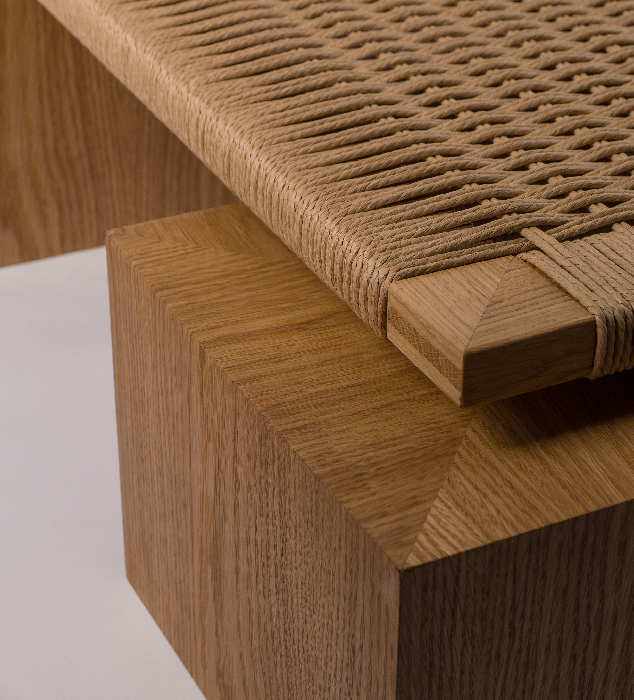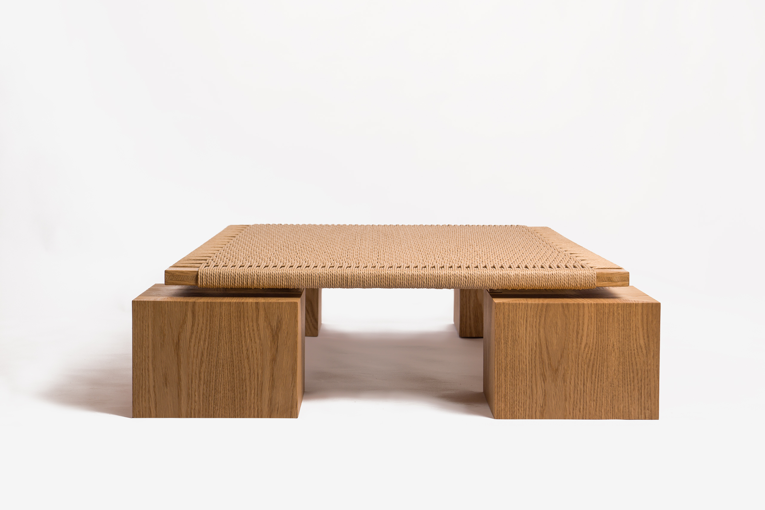 Handmade in Sweden with the finest craftsmanship, using Swedish materials of the highest quality. Solvik is a coffee table designed by hand and pencil, carved from Swedish oak and woven together with paper cord. Its design honours traditional craftsmanship in a new expression.